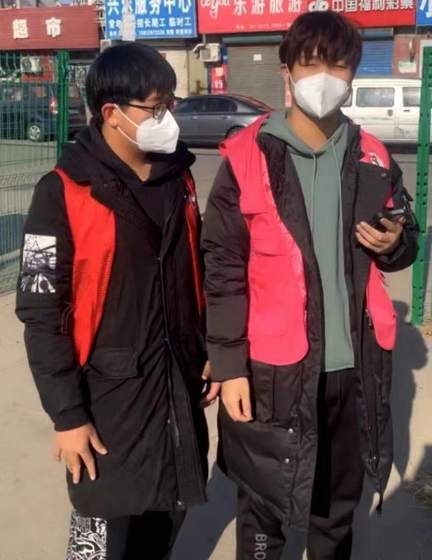 郝霖,2019级乒乓球专项学生,在西青区大寺镇谊龙花园负责核酸检测现场秩序维护。