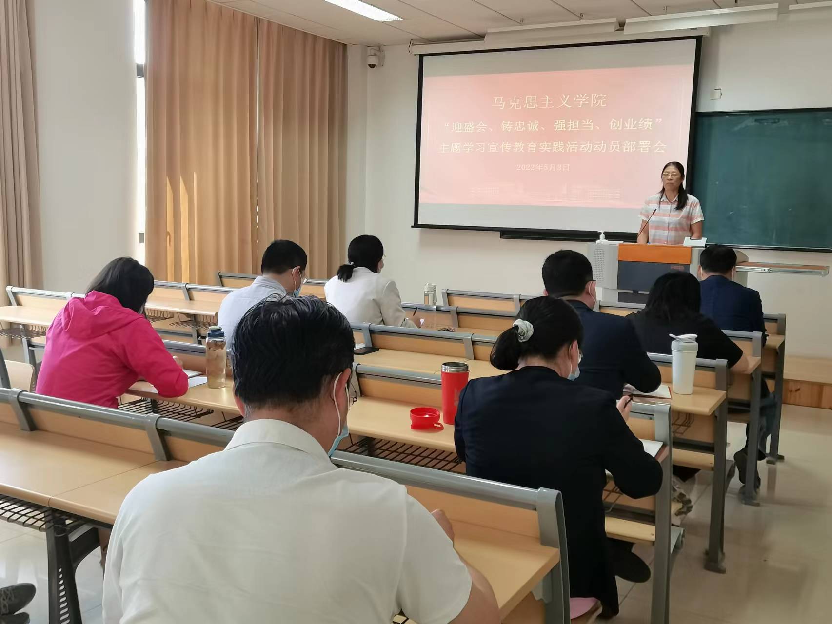 杨书红对马克思主义学院开展“迎盛会、铸忠诚、强担当、创业绩”主题学习宣传教育实践活动实施方案进行解读部署,并提出三点要求。一是提高政治站位,深刻认识开展主题学习宣传教育实践活动的重大意义,深刻领会“两个确立”的决定性意义,把开展主题学习宣传教育实践活动同学院的改革发展稳定工作结合起来,立足本职本岗干事创业。二是抓紧抓实重点任务,用干事创业的扎实业绩体现主题学习宣传教育实践活动工作成效,激励担当作为,筑牢初心使命,营造良好氛围,做好各项重点工作,推动活动走深走实。三是加强引导,按照工作方案和责任分工,以更高标准、更严要求、严实作风确保主题学习宣传教育实践活动取得实效,以优异成绩迎接党的二十大和市第十二次党代会胜利召开。