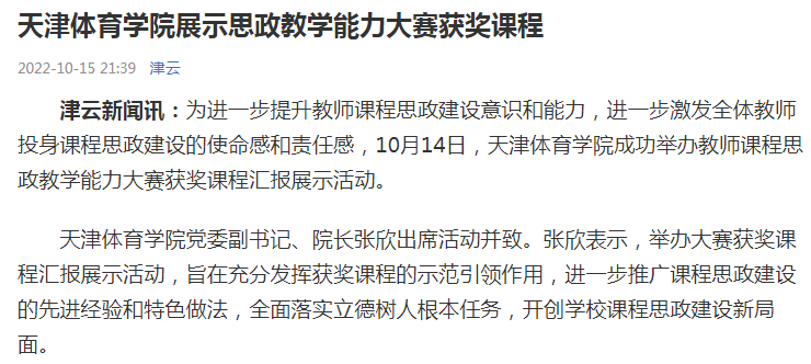 媒体看天体 | 北方网、津云报道我校举办教师课程思政教学能力大赛获奖课程汇报展示活动