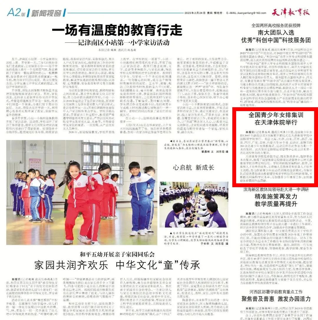 2月24日,《天津教育报》报道全国青少年女排集训在我校举行,现全文转载。